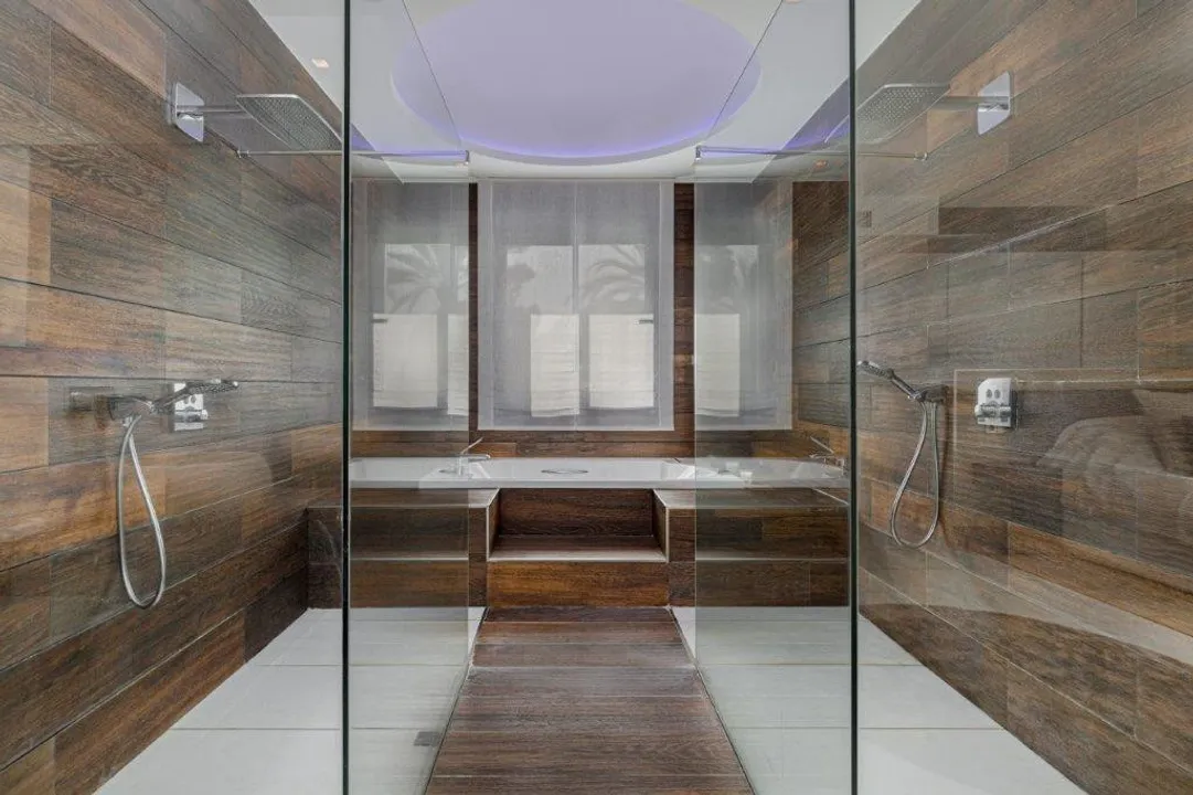 The modern Siematic kitchen, fully equipped, showcases cutting-edge design, ergonomics, and top-quality appliances, including a designer iPhone kitchen extractor with integrated iPhone dock. The dining area and cozy and luxurious living room open onto a spacious and attractive terrace that leads directly to the tropical gardens. Completely renovated in 2014 with top modern design and high-quality materials, this property offers numerous extras, such as a complete home automation system that controls electric blinds, air conditioning, underfloor heating, and LED lighting throughout the home. Additionally, a music system with in-ceiling speakers in each bedroom, Hansgrohe fixtures, and Porcelanosa ceramic tiles in the bathrooms add to the luxurious feel.
