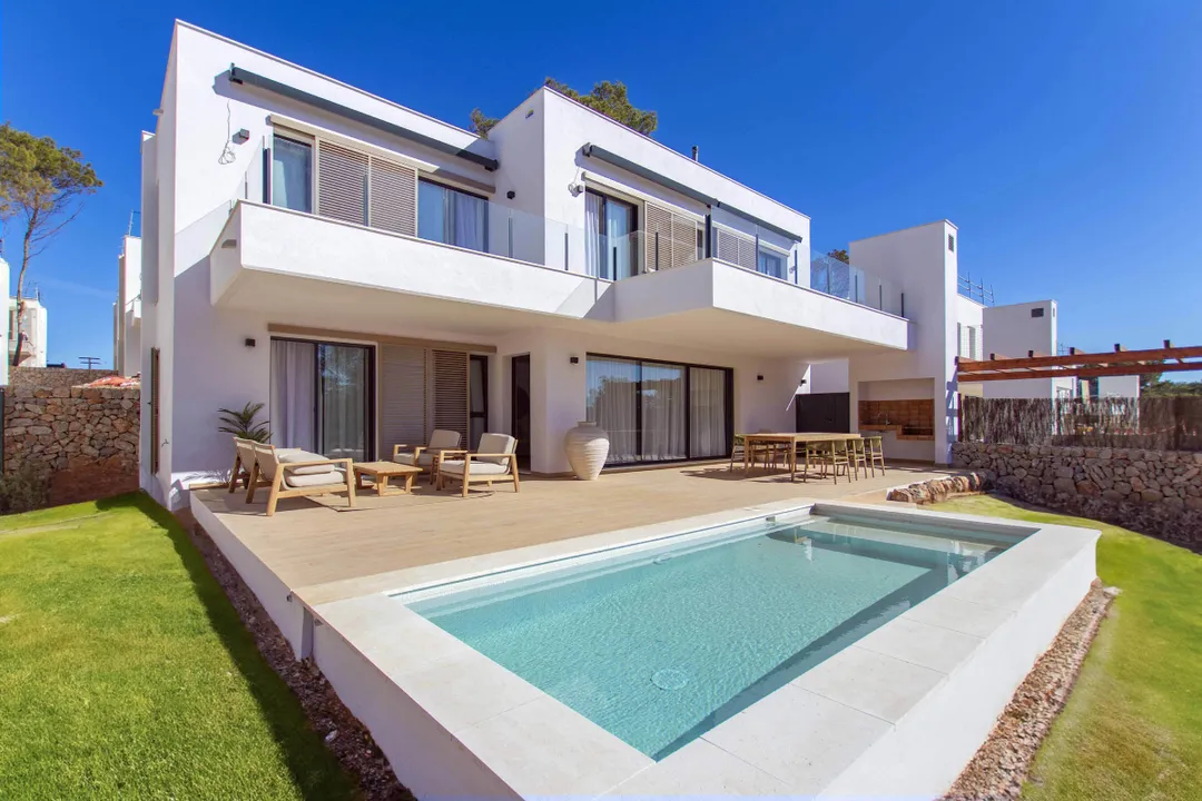 Las viviendas en Son Parc destacan por su diseño y confort, ofreciendo 4 amplios dormitorios, 3 baños, una cocina de alta gama, piscina privada, jardín y terraza, creando un espacio ideal para el descanso y el disfrute.