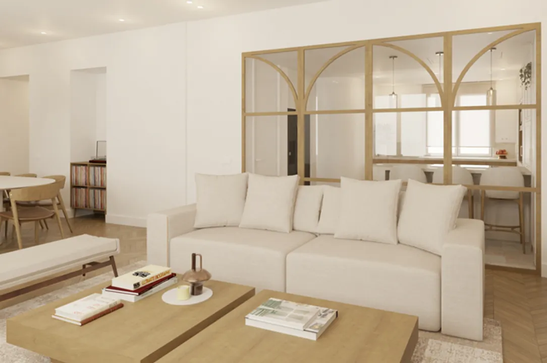 La vivienda, amueblada por un reconocido interiorista, combina elegancia contemporánea con funcionalidad y materiales de la más alta calidad.