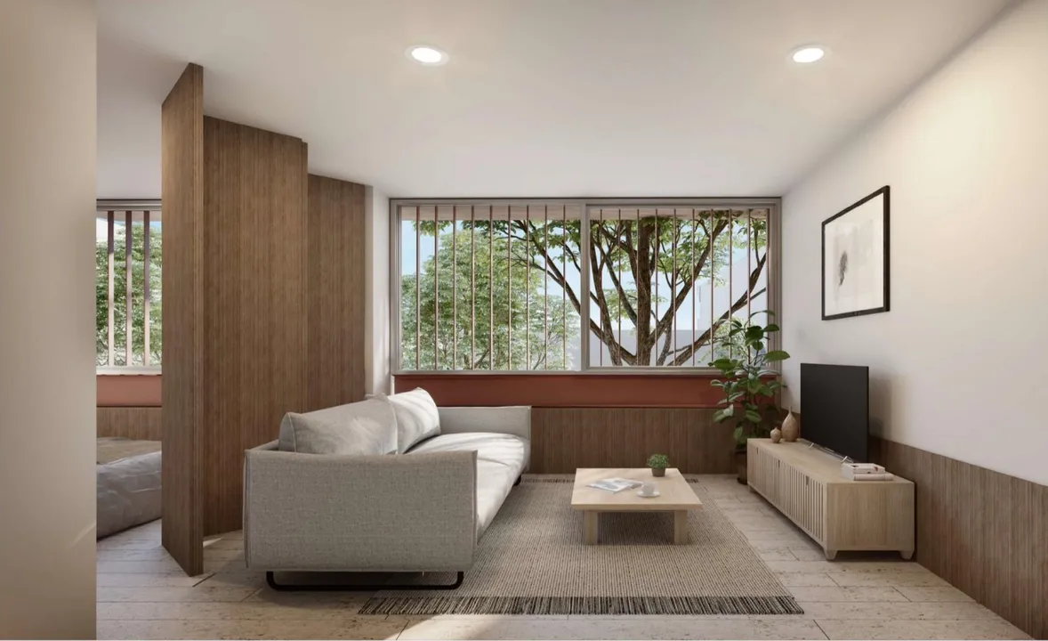 Cuenta con 2 recámaras, 2 baños completos, cocina integral, estancia-comedor, cuarto de lavado y balcones o patios privados, según el modelo. Las distribuciones han sido cuidadosamente diseñadas para aprovechar la luz natural, facilitar la ventilación cruzada y brindar una experiencia de vida cómoda y contemporánea.